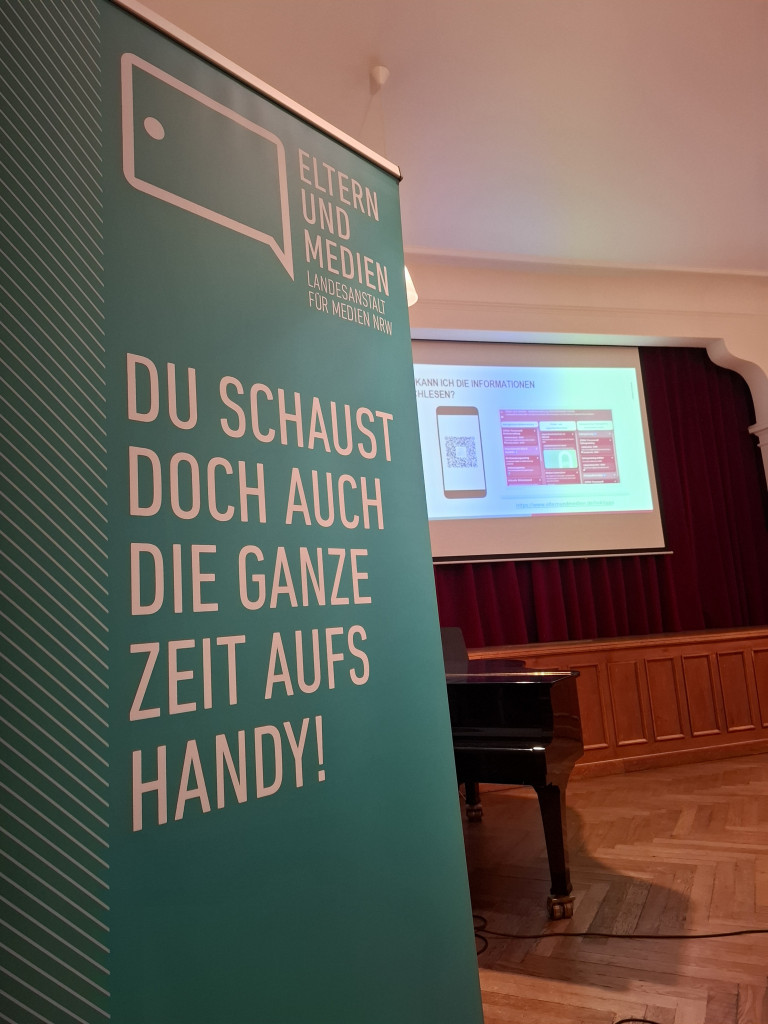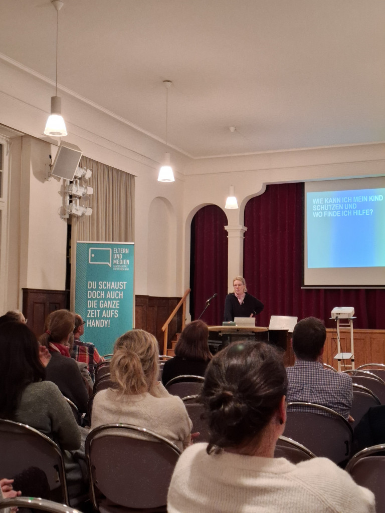 Trotz einer terminlichen Überschneidung mir dem Martinszug fanden sich am Abend des 6. November Eltern aus den fünften, sechsten und siebten Klassen unserer Schule im Theatersaal ein, um sich über das Thema „Faszination Smartphone“ zu informieren. Johanna Wunsch, Referentin der Landesanstalt für Medien, bot einen spannenden und informativen Vortrag zu den Themenfelderm „altersgerechte Mediennutzung“ sowie „Cybergrooming“, gleichzeitig stand sie Rede und Antwort zu den Fragen der Eltern.