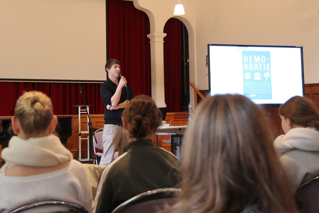 Dem Wesen der Demokratie auf der Spur – Im Rahmen des Käpt’n Book Lesefestes 2025 überzeugt der Journalist Jan Ludwig bei uns am SAG mit seinem Vortrag zum Thema Demokratie